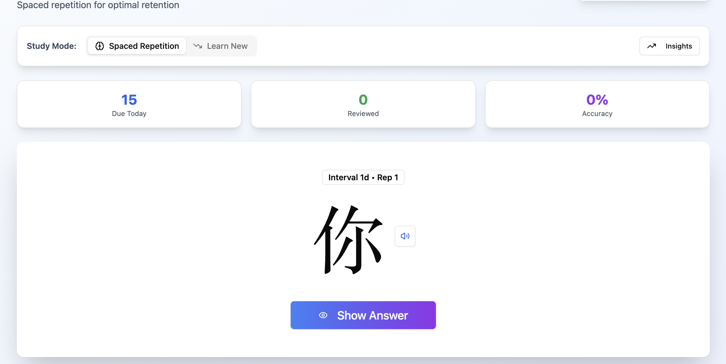 - Smart Flashcards: Our intelligent spaced repetition system (SRS) ensures you retain new characters and vocabulary long-term.